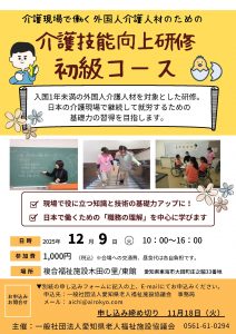 外国人介護技能向上研修「初級コース」を開催いたします。